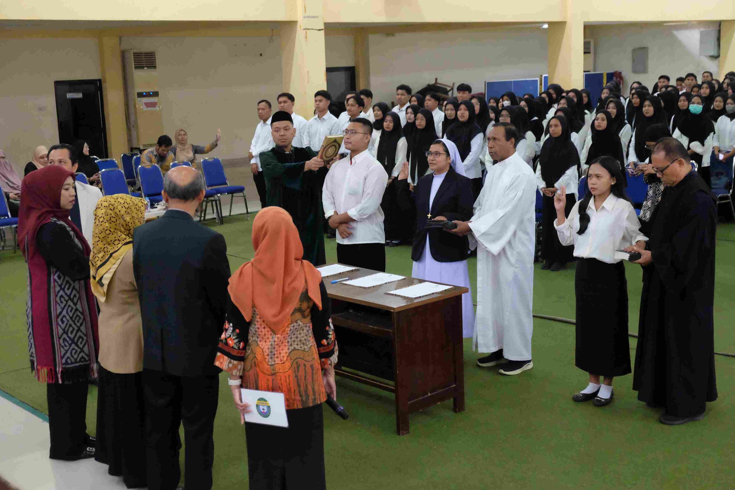 Prosesi sumpah profesi dilakukan secara khidmat, disaksikan oleh Ketua Program Studi TLM, serta dikukuhkan oleh rohaniawan dari tiga agama, yakni Islam, Katolik, dan Protestan, sebagai bentuk penghormatan terhadap keberagaman dan nilai spiritual para peserta.