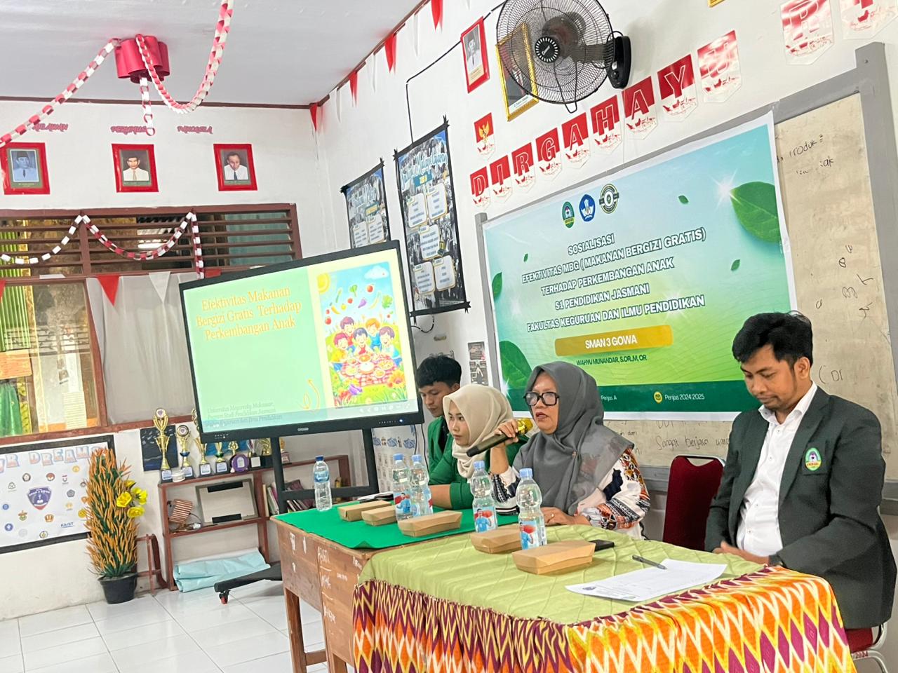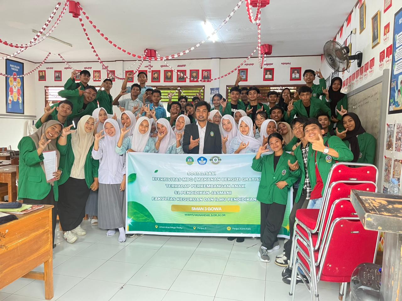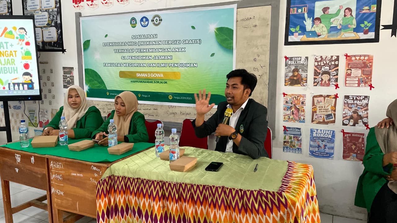 Mahasiswa Program Studi Pendidikan Jasmani kelas 25/A, Fakultas Keguruan dan Ilmu Pendidikan (FKIP) Universitas Megarezky (UNIMERZ) melaksanakan kegiatan Sosialisasi dan Evaluasi Efektivitas Program Makanan Bergizi Gratis (MBG) di SMA Negeri 3 Gowa, Rabu (21/1/2026).