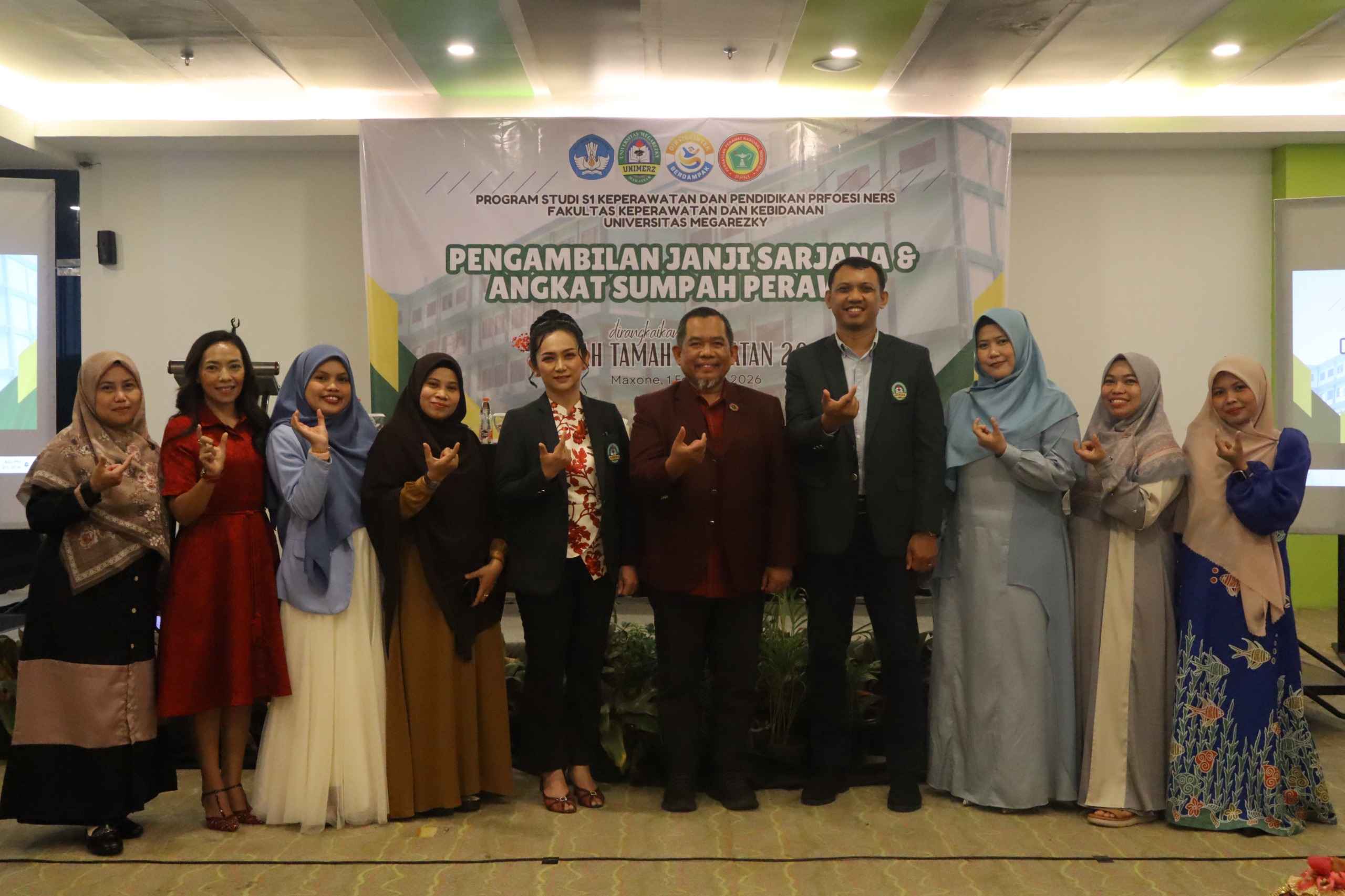Program Studi S1 Keperawatan dan Pendidikan Profesi Ners Fakultas Keperawatan dan Kebidanan Universitas Megarezky (UNIMERZ) kembali menyelenggarakan kegiatan Pengambilan Janji Sarjana Keperawatan dan Pengambilan Sumpah Profesi Ners yang dirangkaikan dengan acara ramah tamah. Kegiatan ini berlangsung pada Sabtu, 1 Februari 2026, bertempat di Hotel Maxone, Makassar.