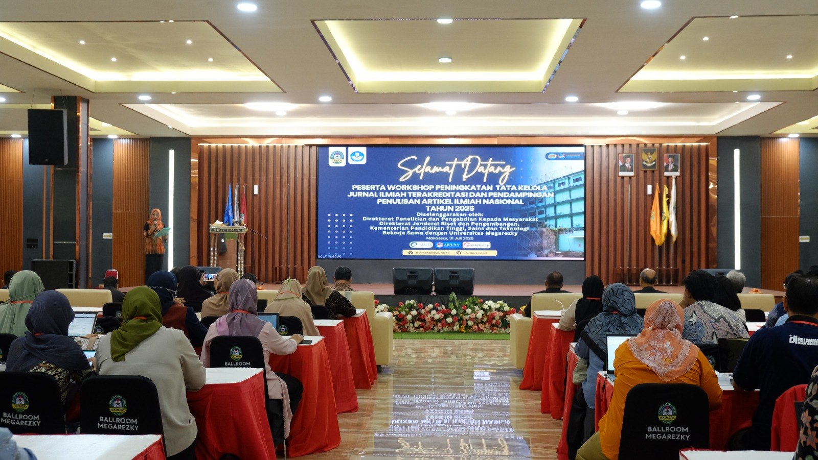 - Workshop Peningkatan Tata Kelola Jurnal Ilmiah Terakreditasi yang berlangsung di Ballroom Megarezky.