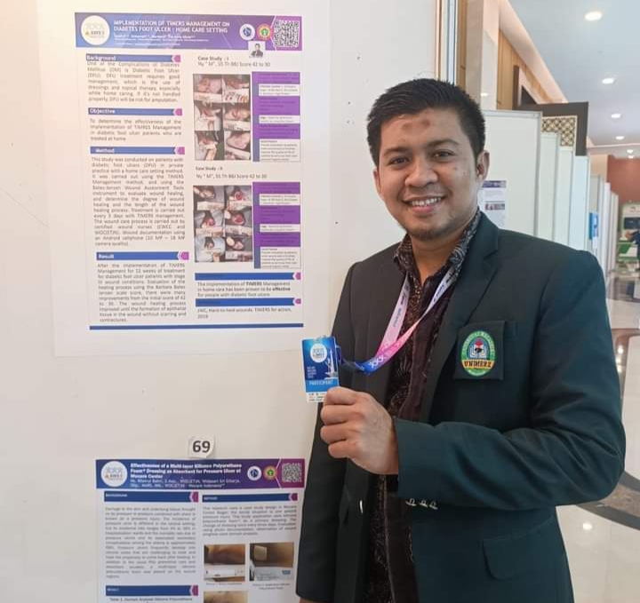 Delegasi Prodi Pendidikan Profesi Ners di wakili oleh Syaiful, S.Kep., Ns., M.Kep yang mempersentasikan Poster dengan judul “IMPLEMENTATION OF TIMERS MANAGEMENT ON DIABETES FOOT ULCER : HOME CARE SETTING”.